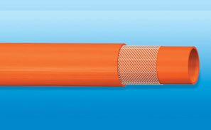 Double layer PVC wall with intermediate braided polyester yarn reinforcement (outer cover and inner tube all orange).